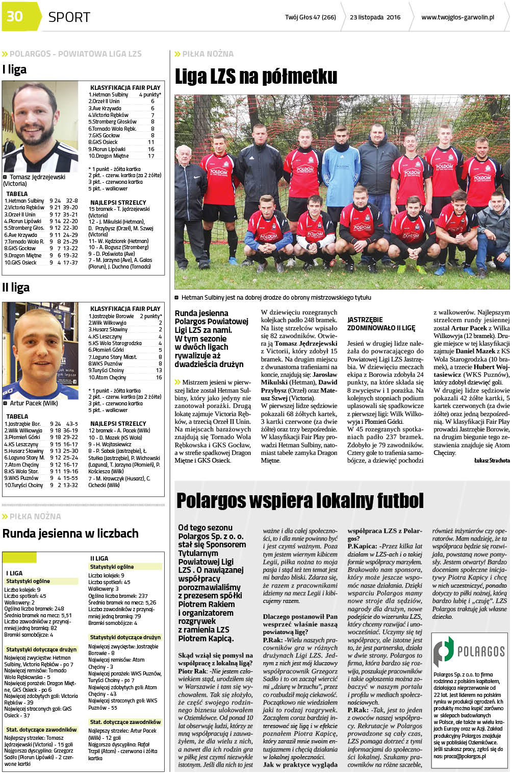 Dla tych, co nie zdążyli kupić Twojego Głosu, w którym najbardziej znany i lubiany redaktor sportowy w naszym powiecie – Łukasz Strachota, opisuje zakończenie rundy jesiennej w LZS-ach.