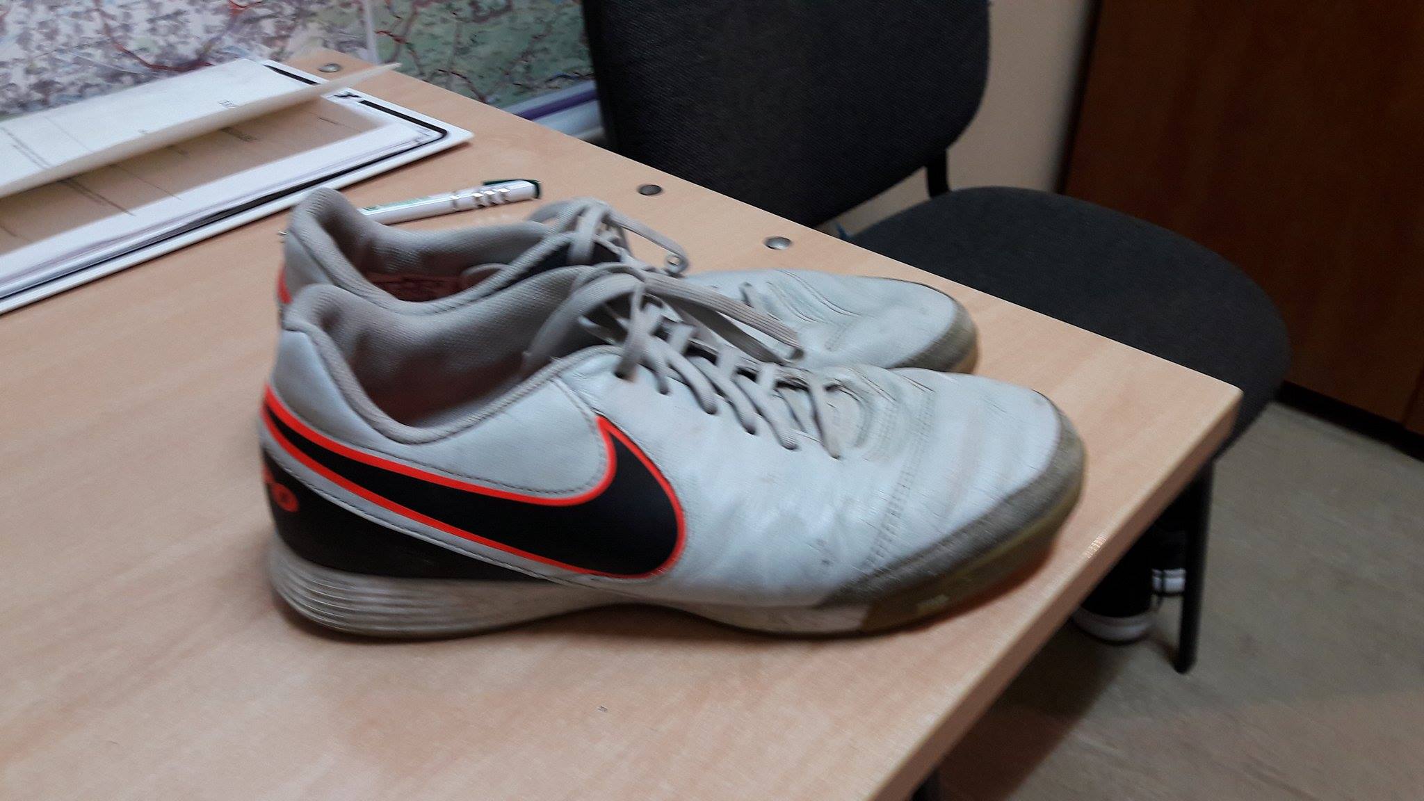 Po zmaganiach grupowych 27 listopada w hali ZS Nr 2, ktoś zostawił obuwie sportowe. Foto poniżej. Uczciwego zawodnika, który stracił obuwie zapraszamy po odbiór. Będziemy sprawdzać rozmiar (podobnie jak u Kopciuszka), dlatego prosimy tylko tych, co ostatnio zgubili buty, a nie tych, którym akurat brakuje porządnych butów sportowych. O rozstrzygnięciu konkursu poinformujemy opinię publiczną.