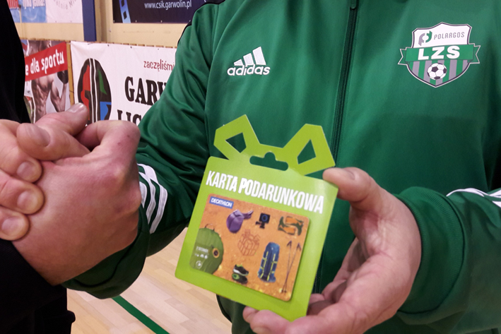 Podczas VI kolejki spotkań w Lidze LZS, rozgrywanych w ramach Garwolińskiej Ligi Piłkarskiej, bon podarunkowy o wartości 250 zł odebrał zwycięzca Świątecznego Konkursu POLARGOS. Mariusz zdecydował się zrealizować nagrodę w Decathlonie. Gratulujemy.