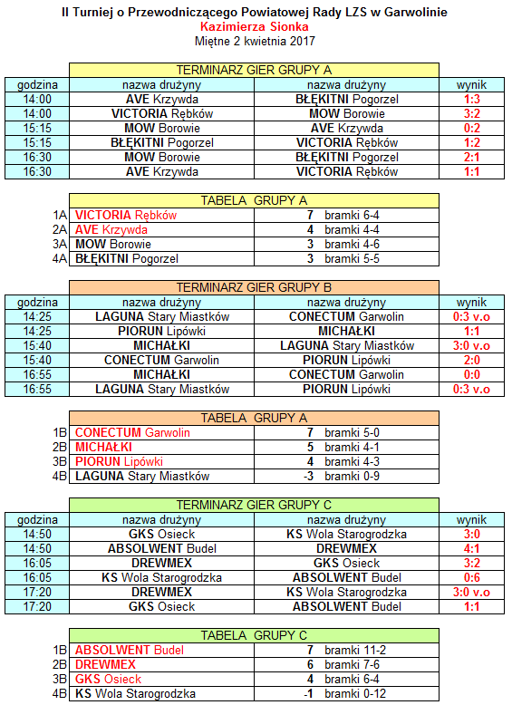 W niedzielę 2 kwietnia 2017 roku na boiskach Powiatowego Centrum Sportu w Miętnem odbyła się druga edycja turnieju piłkarskiego o Puchar Przewodniczącego Powiatowej Rady LZS w Garwolinie – Kazimierza Sionka.
