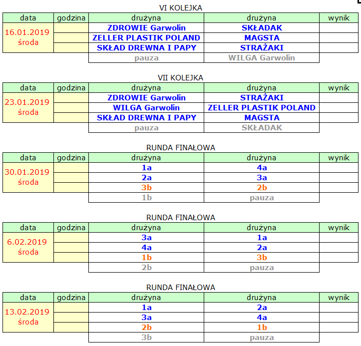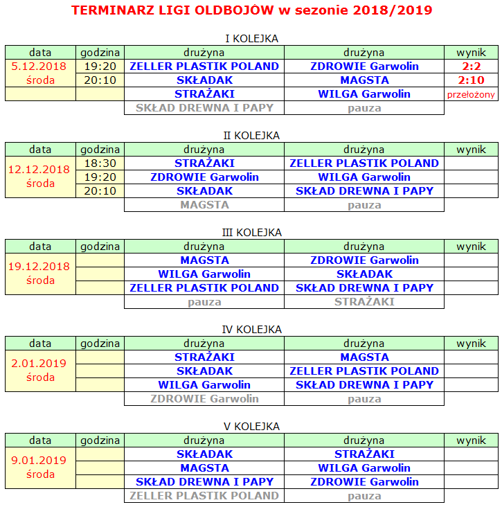 W Lidze Oldbojów 7 ekip. Gramy najpierw rundę zasadniczą, potem rundę finałową. Są jeszcze szansę na 8 ekipę, która wskoczy w miejsce pauzy.