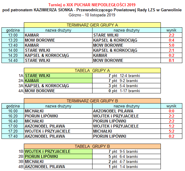 XIX TURNIEJ NIEPODLEGŁOŚCI 2019 GLP pod patronatem Kazimierza Sionka – Przewodniczącego Powiatowej Rady LZS w Garwolinie.