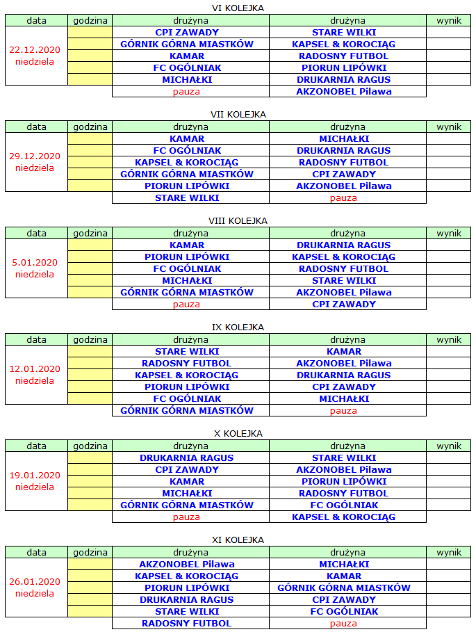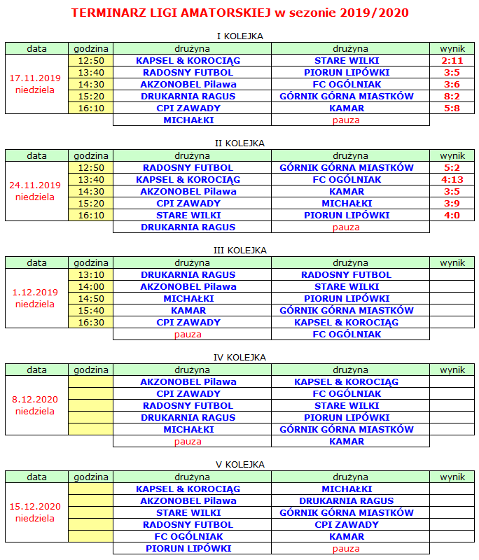 Terminarz Ligi Amatorskiej