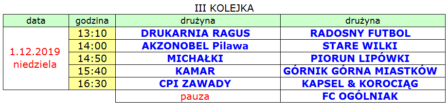 III kolejka Ligi Amatorskiej (niedziela 1 grudnia) zostanie rozegrana w Hali Sportowej w Górznie.