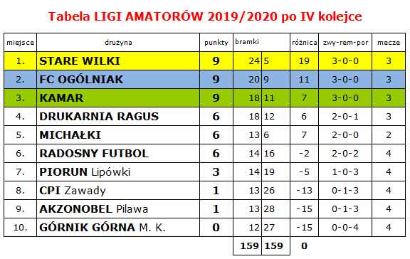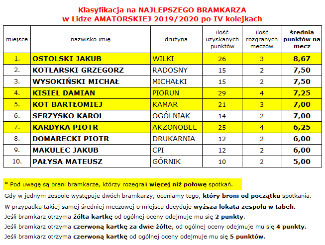 Liga Amatorska – aktualizacja po IV kolejce