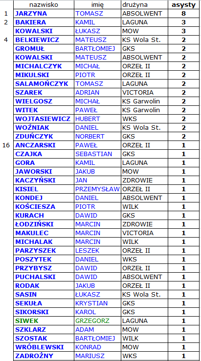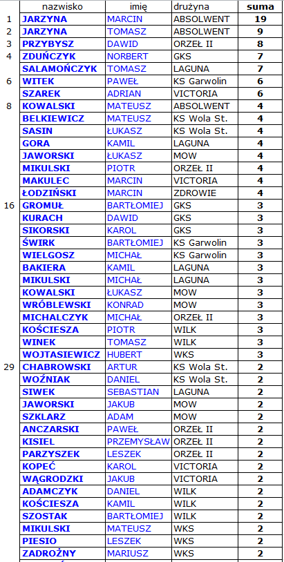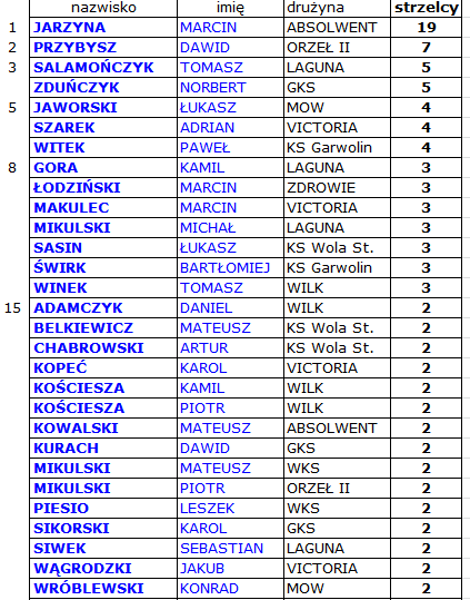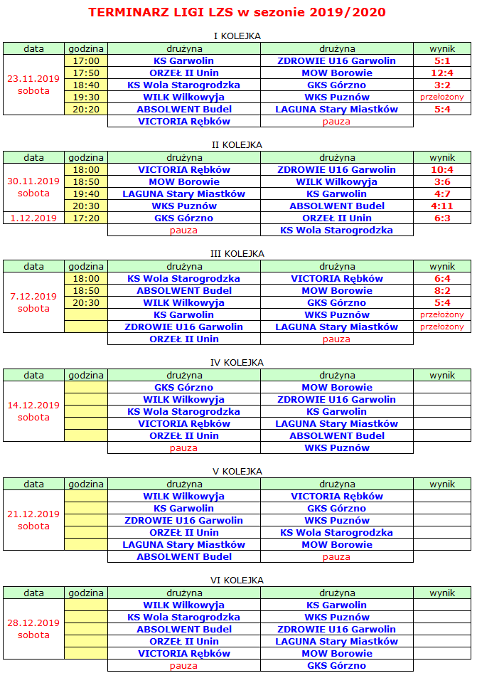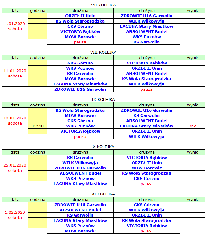 19:40 WKS Puznów – LAGUNA Stary Miastków 4:7 (awansem z IX kolejki)