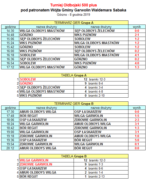 Wilga Garwolin wygrywa Turniej Oldbojski 500 plus pod patronatem Wójta Gminy Górzno – Waldemara Sabaka. Drugie miejsce zajmuje Zdrowie Garwolin, a trzeci plac dla oldbojów z Sobolewa.