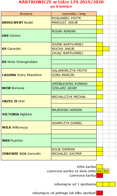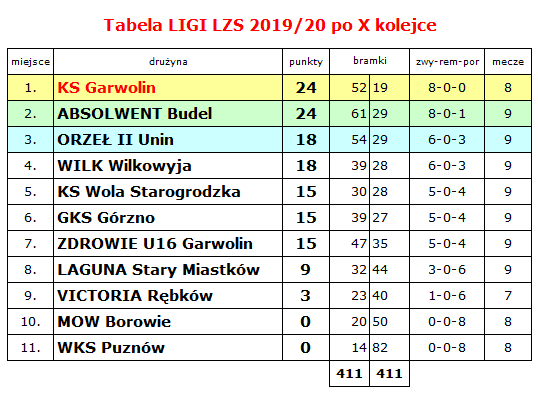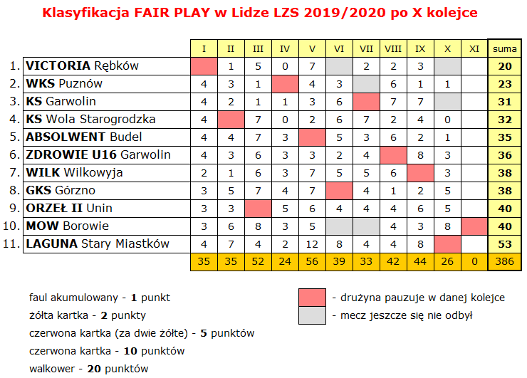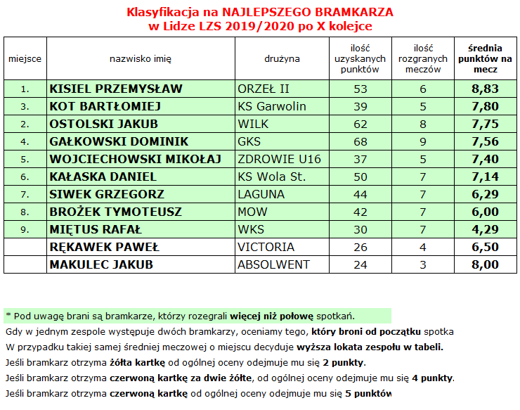 Liga LZS – stan po X kolejce